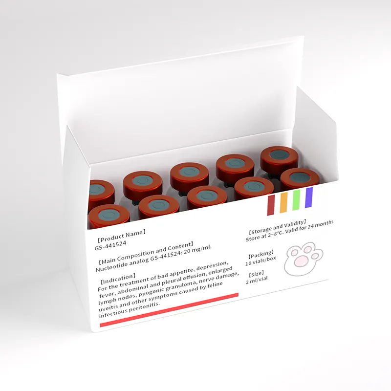GS-441524 is a nucleotide analog containing 20 mg/ml of the active ingredient, specifically designed to treat various symptoms caused by feline infectious peritonitis (FIP), including poor appetite, depression, fever, abdominal and pleural effusion, enlarged lymph nodes, pyogenic granuloma, nerve damage, and uveitis.